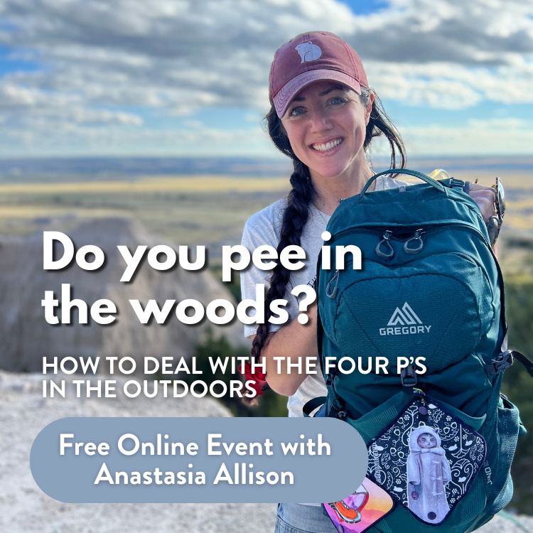 We're thrilled to offer our first online event, with Anastasia Allison, a former US park ranger and seasoned backpacking instructor (and the founder of Kula Cloth) who will lead us through unforgettable hour of laughter, inspiration, and practical wisdom on the 4 P's of outdoor adventure (peeing, pooping, periods and personal hygiene!)