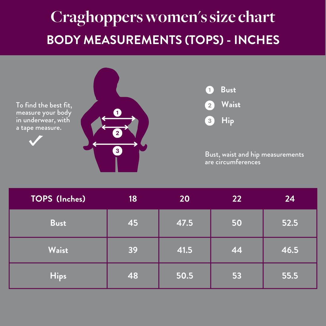 Size charts: Craghoppers Women's Jackets & Tops