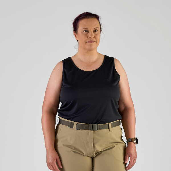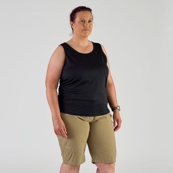 Maier Sports' sleeveless Petra vest top in plus sizes is incredibly comfortable to wear, which makes it the perfect choice for hiking and other sports. Its lightweight piqué fabric and dryprotec technology ensures the material dries quickly, no matter how sweaty you get. And thanks to the feminine cut and perfect fit, this outdoor vest top is a real eyecatcher as well.