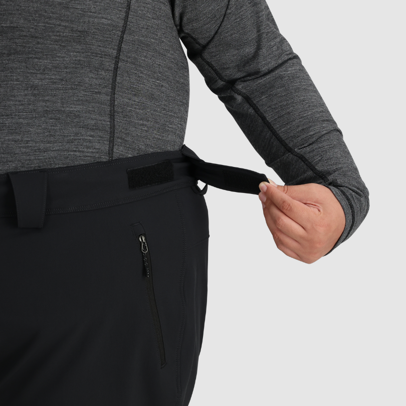 Thermoregulating ActiveTemp™ treatment on the brushed tricot-lined waistband adapts to the body's temperature, while the avalanche beacon pocket with clip secures critical safety gear. Gusseted ankle zippers and reinforced scuff guards allow the pants to fit over various boot shapes and sizes and protect from crampons and ski edges. The secure waist with an adjustable embedded belt ensures a perfect fit, and YKK® DWR-treated zippers alongside zip hand and thigh pockets keep essentials safe and dry.
