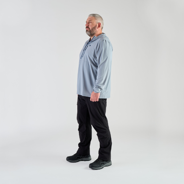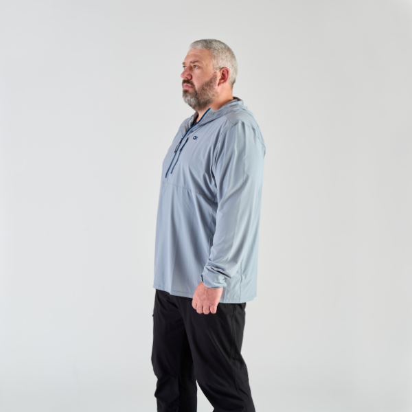 The Outdoor Research Astroman Air Sun Hoodie is designed for comfort and sun protection while working reachy moves at the crag, trekking deep into the mountains, or hanging with friends at camp. Available in XXL and XXXL sizes. Size chart at bottom of page.