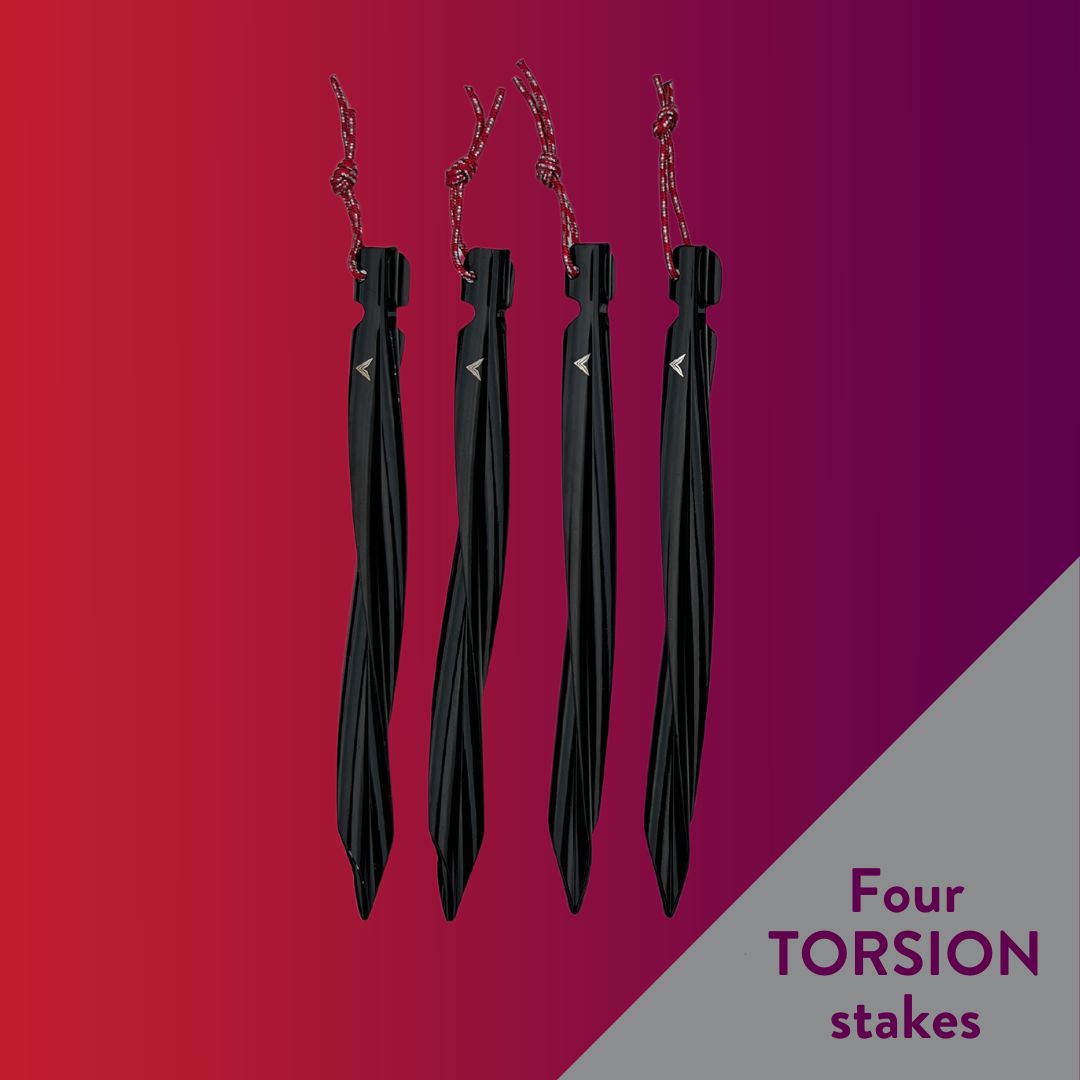 Whether you're pitching on hard, sun-baked ground, or a soft mountain bog, the combination of TORSION twisted y-pegs and IMPALER y-pegs will secure your shelter whatever the weather.